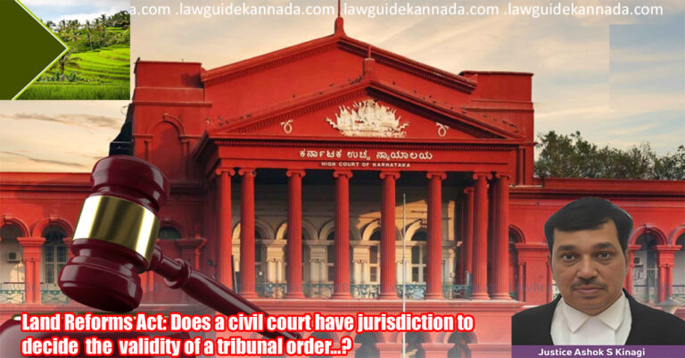 ಬೆಂಗಳೂರು: ಭೂ ಸುಧಾರಣಾ ಕಾಯ್ದೆ ಅಡಿಯಲ್ಲಿ ಭೂ ನ್ಯಾಯಮಂಡಳಿ ನೀಡಿದ ಆದೇಶದ ಸಿಂಧುತ್ವ ನಿರ್ಧರಿಸುವ ಅಧಿಕಾರ ಸಿವಿಲ್ ನ್ಯಾಯಾಲಯಕ್ಕೆ ಇಲ್ಲ ಎಂದು ಕರ್ನಾಟಕ ಹೈಕೋರ್ಟ್ ತೀರ್ಪು ನೀಡಿದೆ....