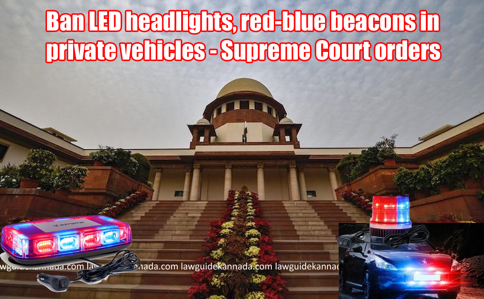 ಖಾಸಗಿ ವಾಹನಗಳಲ್ಲಿ, LED ಹೆಡ್ ಲೈಟ್, ಕೆಂಪು- ನೀಲಿ ಬೀಕನ್ ಗಳನ್ನು ನಿಷೇಧಿಸಿ – ಸುಪ್ರೀಂ ಸೂಚನೆ