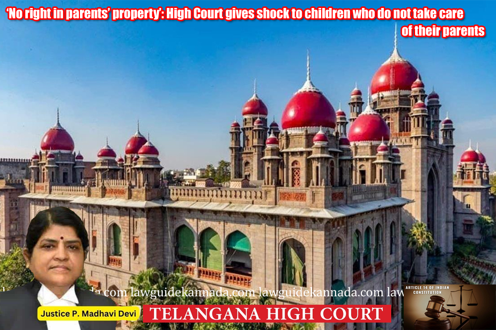 ಹೈದರಾಬಾದ್ : ಬೆಳೆದು ದೊಡ್ಡವರಾಗಿ ತಾವು ಜೀವನ ರೂಪಿಸಿಕೊಂಡ ನಂತರ ತನ್ನ ಹೆತ್ತವರನ್ನ ಮರೆತು ಅವರನ್ನ ಸರಿಯಾಗಿ ನೋಡಿಕೊಳ್ಳದೇ ಕಡೆಗಣಿಸುವ ಮಕ್ಕಳಿಗೆ ಇದೀಗ ತೆಲಂಗಾಣ ಹೈಕೋರ್ಟ್ ಶಾಕ್...