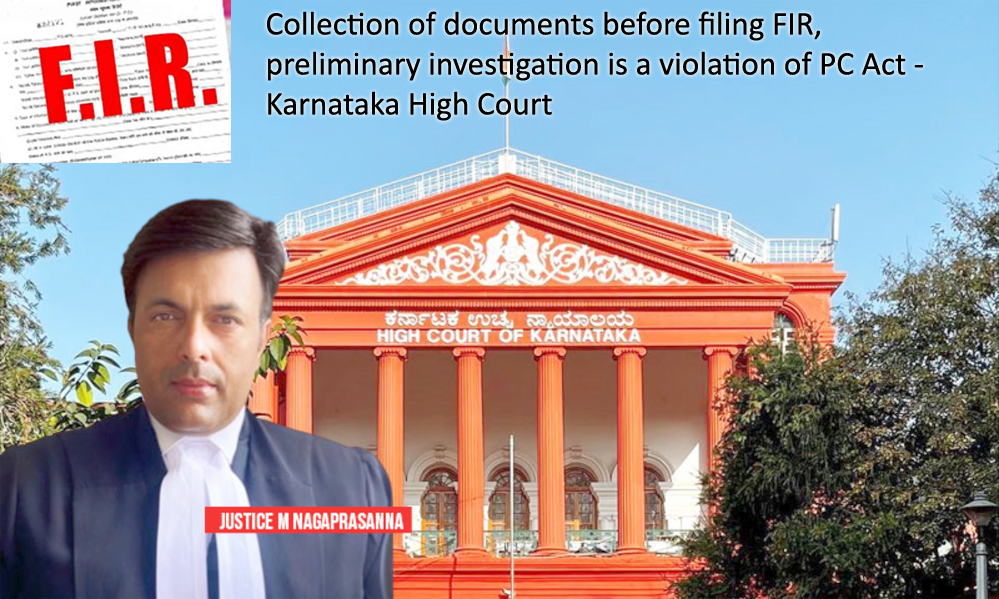 FIR ದಾಖಲಿಸುವ ಮುನ್ನವೇ ದಾಖಲೆ ಸಂಗ್ರಹ, ಪ್ರಾಥಮಿಕ ತನಿಖೆಯು ಪಿಸಿ ಕಾಯ್ದೆಯ ಉಲ್ಲಂಘನೆ – ಹೈಕೋರ್ಟ್