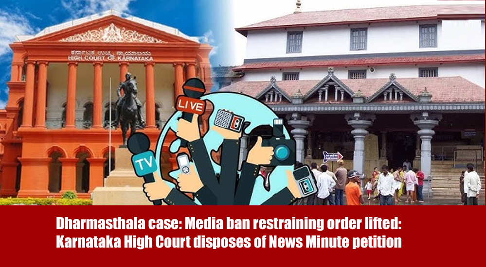 ಧರ್ಮಸ್ಥಳ ಕೇಸ್: ಮಾಧ್ಯಮ ನಿರ್ಬಂಧ ಪ್ರತಿಬಂಧಕಾದೇಶ ತೆರವು: ನ್ಯೂಸ್ ಮಿನಿಟ್ ಅರ್ಜಿ ಇತ್ಯರ್ಥಪಡಿಸಿದ ಹೈಕೋರ್ಟ್