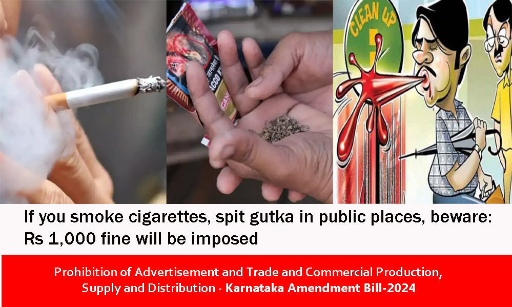 ಸಾರ್ವಜನಿಕ ಸ್ಥಳಗಳಲ್ಲಿ ಸಿಗರೇಟ್ ಸೇದಿದ್ರೆ, ಗುಟ್ಕಾ ಉಗುಳಿದ್ರೆ ಹುಷಾರ್: ಬೀಳುತ್ತೆ 1ಸಾವಿರ ರೂ. ದಂಡ