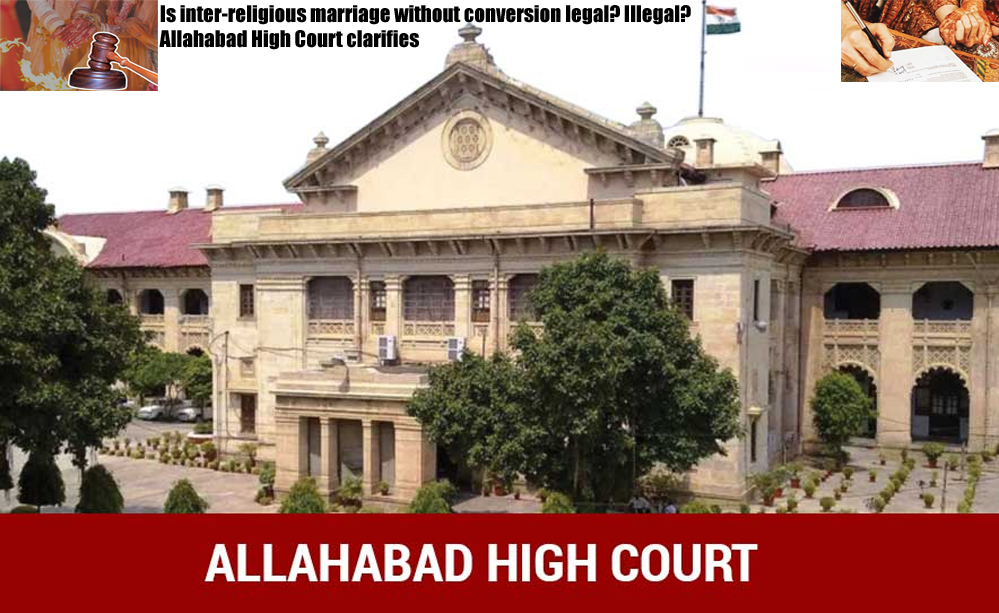 ಅಲಹಾಬಾದ್: ಮತಾಂತರವಿಲ್ಲದೆ ನಡೆಯುವ ಅಂತರ್ ಧರ್ಮೀಯ ವಿವಾಹ ಕಾನೂನು ಬಾಹಿರ ಎಂದು ಅಲಹಾಬಾದ್ ಹೈಕೋರ್ಟ್ ತೀರ್ಪು ನೀಡಿದೆ.