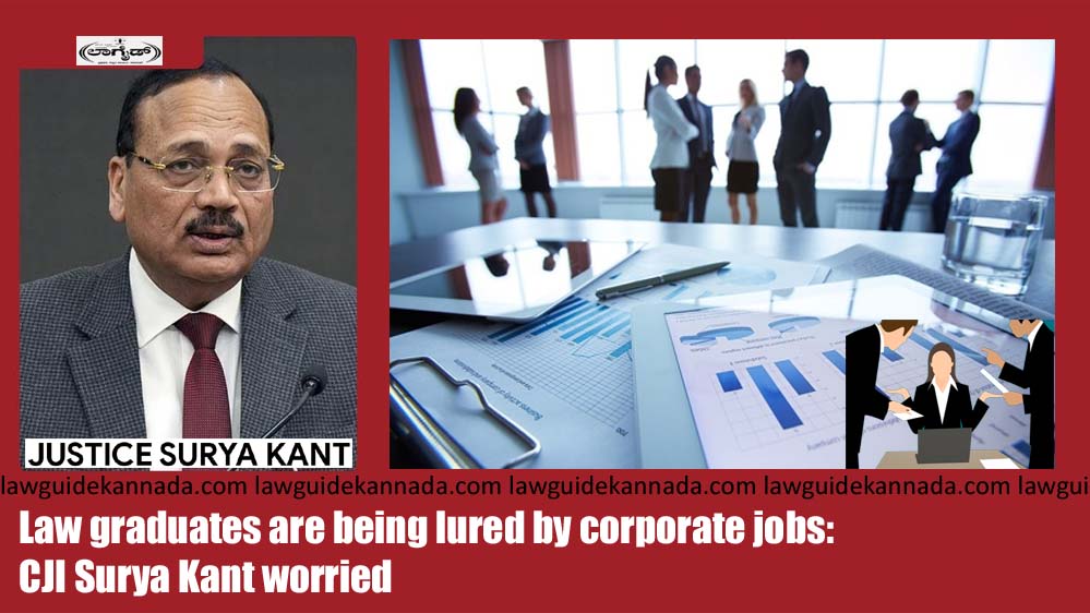 ಕಾರ್ಪೊರೇಟ್ ಸಂಸ್ಥೆಗಳು ವಿಶ್ವವಿದ್ಯಾಲಯದ ಹೊರಗೆ ಕಾನೂನು ಪದವೀಧರರಿಗೆ ಉದ್ಯೋಗದ ಆಮಿಷವೊಡ್ಡಿ ಹೈಜಾಕ್ ಮಾಡುತ್ತಿವೆ. ಇದು ನನ್ನನ್ನು ಚಿಂತೆಗೀಡುಮಾಡಿದೆ. ಏಕೆಂದರೆ ರಾಷ್ಟ್ರೀಯ ಕಾನೂನು ವಿದ್ಯಾಕೇಂದ್ರಗಳು, ಬಾರ್ ಮತ್ತು ಬೆಂಚ್ಗೆ ಅಗತ್ಯವಿರುವ ಸದಸ್ಯರನ್ನು ಅಣಿಗೊಳಿಸುತ್ತವೆ’ ಎಂದು ಸಿಜೆಐ ಸೂರ್ಯಕಾಂತ್ ಹೇಳಿದರು.