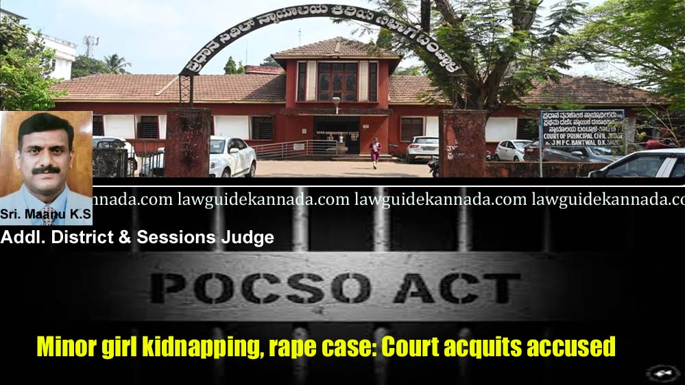 ಮಂಗಳೂರು: ಅಪ್ರಾಪ್ತ ಬಾಲಕಿಯನ್ನು ಅಪಹರಣ ಮಾಡಿ ಅತ್ಯಾಚಾರವೆಸಗಿದ್ದ ಆರೋಪ ಪ್ರಕರಣಕ್ಕೆ ಸಂಬಂಧಿಸಿದಂತೆ ಆರೋಪಿಯನ್ನು ಖುಲಾಸೆಗೊಳಿಸಿ ಮಂಗಳೂರಿನ ಎರಡನೇ ಹೆಚ್ಚುವರಿ ಜಿಲ್ಲಾ ಮತ್ತು ಪೋಕ್ಸೋ ವಿಶೇಷ ನ್ಯಾಯಾಲಯ ತೀರ್ಪು ನೀಡಿದೆ.