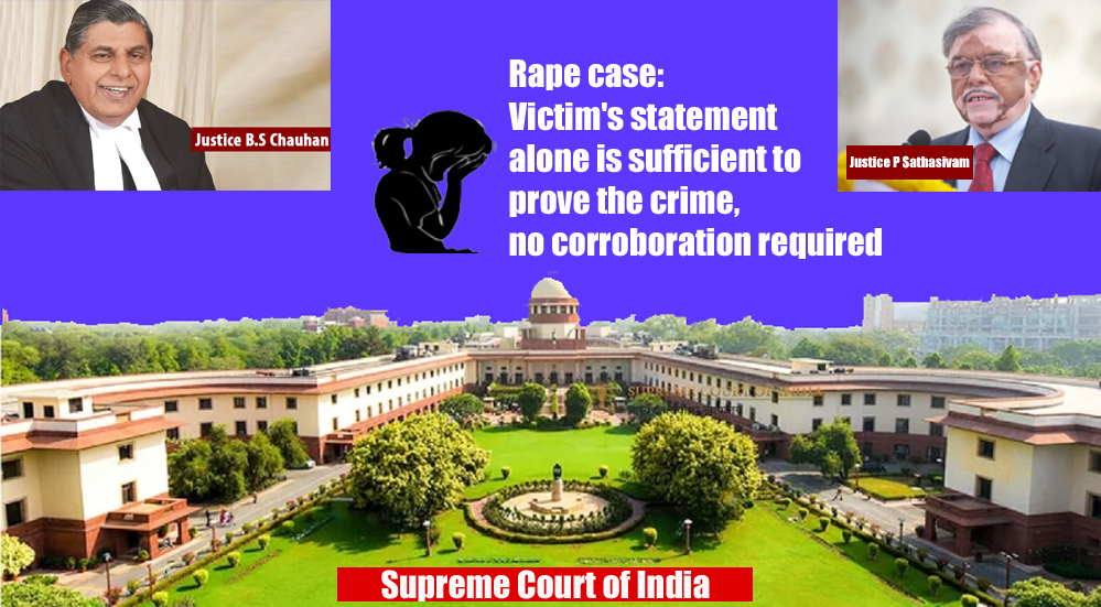 ಸುಪ್ರೀಂ ಕೋರ್ಟ್ ನ್ಯಾಯಮೂರ್ತಿಗಳಾದ ಪಿ ಸದಾಶಿವಂ ಮತ್ತು ಬಿ.ಎಸ್. ಚೌಹಾಣ್ ಅವರಿದ್ದ ನ್ಯಾಯಪೀಠವು, ಅತ್ಯಾಚಾರ ಸಂತ್ರಸ್ತೆಯ ಹೇಳಿಕೆಯೇ ಆರೋಪಿಯನ್ನು ಕ್ರಿಮಿನಲ್ ವಿಚಾರಣೆಯಲ್ಲಿ ತಪ್ಪಿತಸ್ಥರೆಂದು ಘೋಷಿಸಲು ಸಾಕು. ಸಂತ್ರಸ್ತೆಯ ಸಾಕ್ಷ್ಯವು ವಿಶ್ವಾಸಾರ್ಹವೆಂದು ಕಂಡುಬಂದರೆ ಅದನ್ನು ಇತರ ಯಾವುದೇ ಸಾಕ್ಷಗಳಂತೆ ಪರೀಕ್ಷಿಸಬಾರದು. ಆಕೆಯ ಏಕೈಕ ಸಾಕ್ಷದ ಆಧಾರದ ಮೇಲೆ ನ್ಯಾಯಾಲಯವು ಆರೋಪಿಯನ್ನು ಶಿಕ್ಷೆಗೆ ಒಳಪಡಿಸಬಹುದು ಎಂದು ಅಭಿಪ್ರಾಯ ವ್ಯಕ್ತಪಡಿಸಿದೆ.