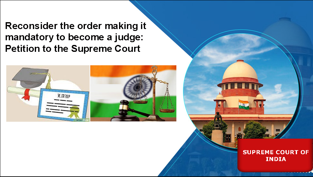 ನ್ಯಾಯಾಧೀಶರಾಗಲು ವಕೀಲಿಕೆ ಕಡ್ಡಾಯ ಆದೇಶ ಮರುಪರಿಶೀಲಿಸಿ: ಸುಪ್ರೀಂಗೆ ಅರ್ಜಿ