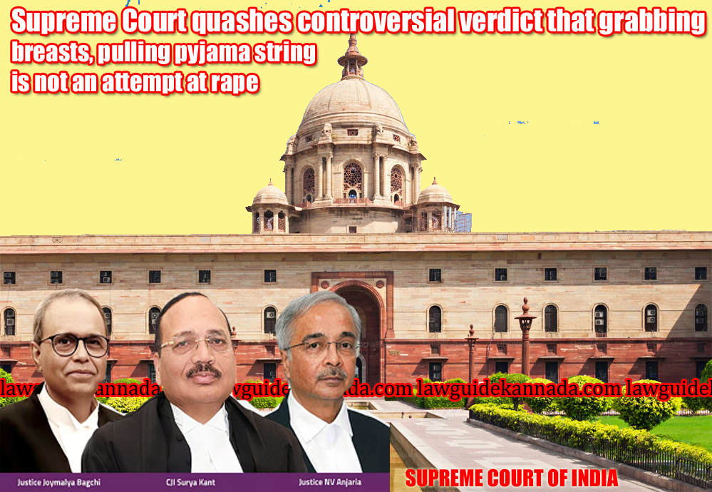 ಸ್ತನ ಹಿಡಿಯುವುದು, ಲಾಡಿ ಬಿಚ್ಚುವುದು ಅತ್ಯಾಚಾರ ಯತ್ನವಲ್ಲವೆಂಬ ವಿವಾದಾತ್ಮಕ ತೀರ್ಪು ರದ್ದುಪಡಿಸಿದ ಸುಪ್ರೀಂ